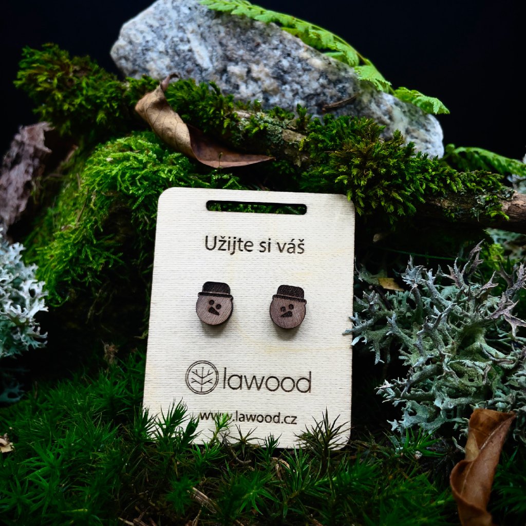 Dřevěné náušnice - Sněhulák