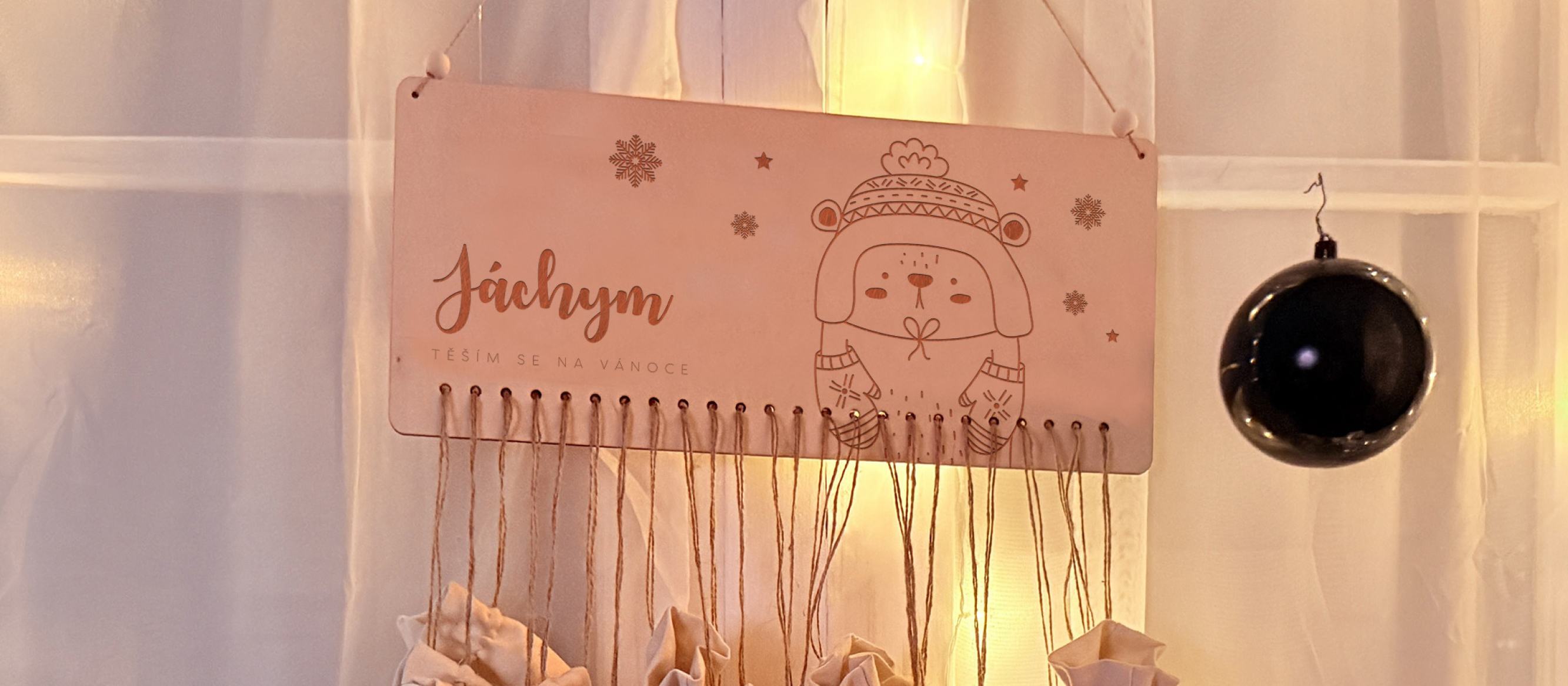 Do kterých můžete schovat drobné dárky nebo sladkosti. Každý pytlíček vzniká pod rukama šikovné @katarina_radova_siti. Pytlíčky jsou připevněny jutovým provázkem, takže celý kalendář působí přirozeně — přesně tak, jak mají Vánoce vypadat.