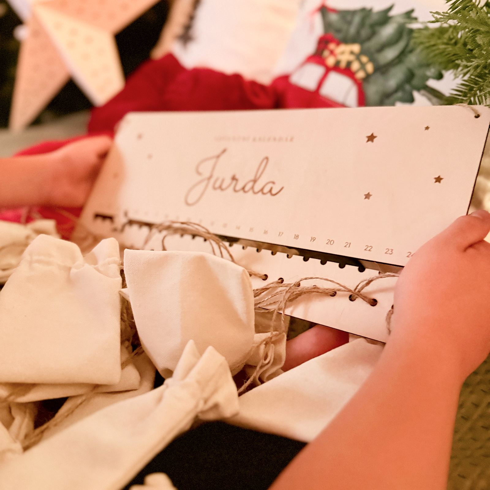 Už máte dost nudných adventních kalendářů ze supermarketů? Dřevěný adventní kalendář je ideální volbou, pokud chcete přichystat vaším ratolestem překvapení na každý den přesně podle vaší fantazie. Na kalendář vám zdarma vygravírujeme text dle vašeho přání.