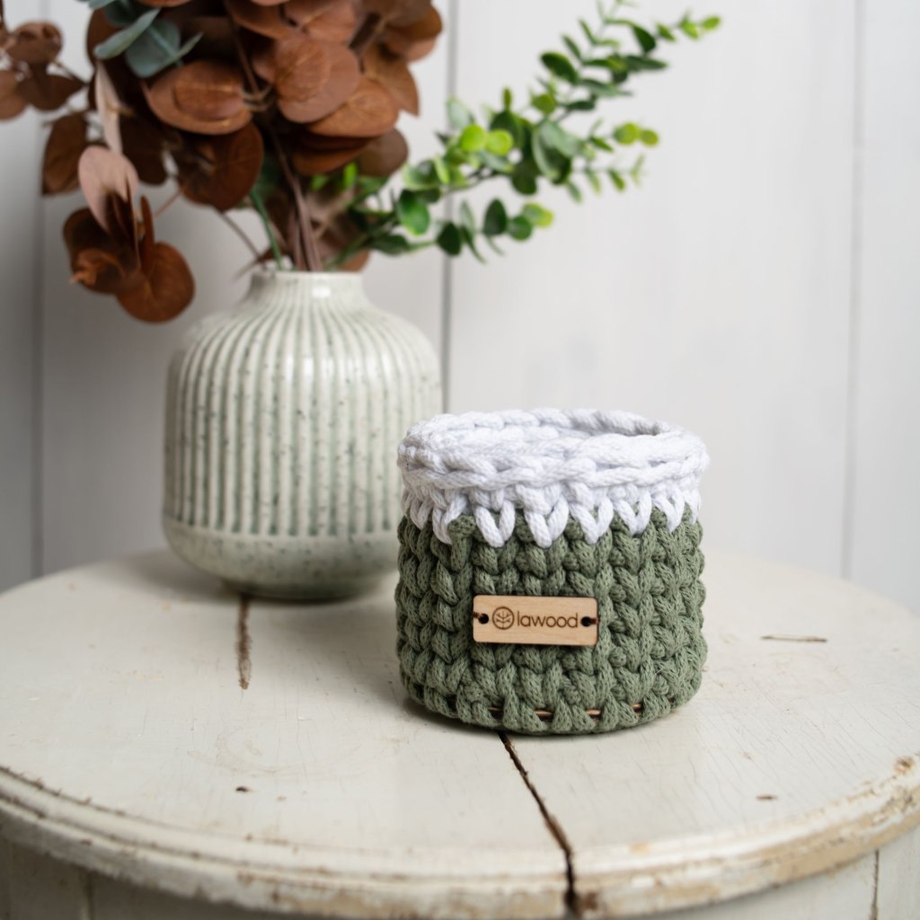 Kouzlo jednoduchosti našich ručně háčkovaných košíčků z bavlněné příze. Každý kousek je originál, který v sobě spojuje český design, přírodní materiály a poctivou ruční práci. Díky pevnému dřevěnému dnu drží tvar a působí elegantně jako úložný i dekorativní doplněk v moderním i rustikálním interiéru.